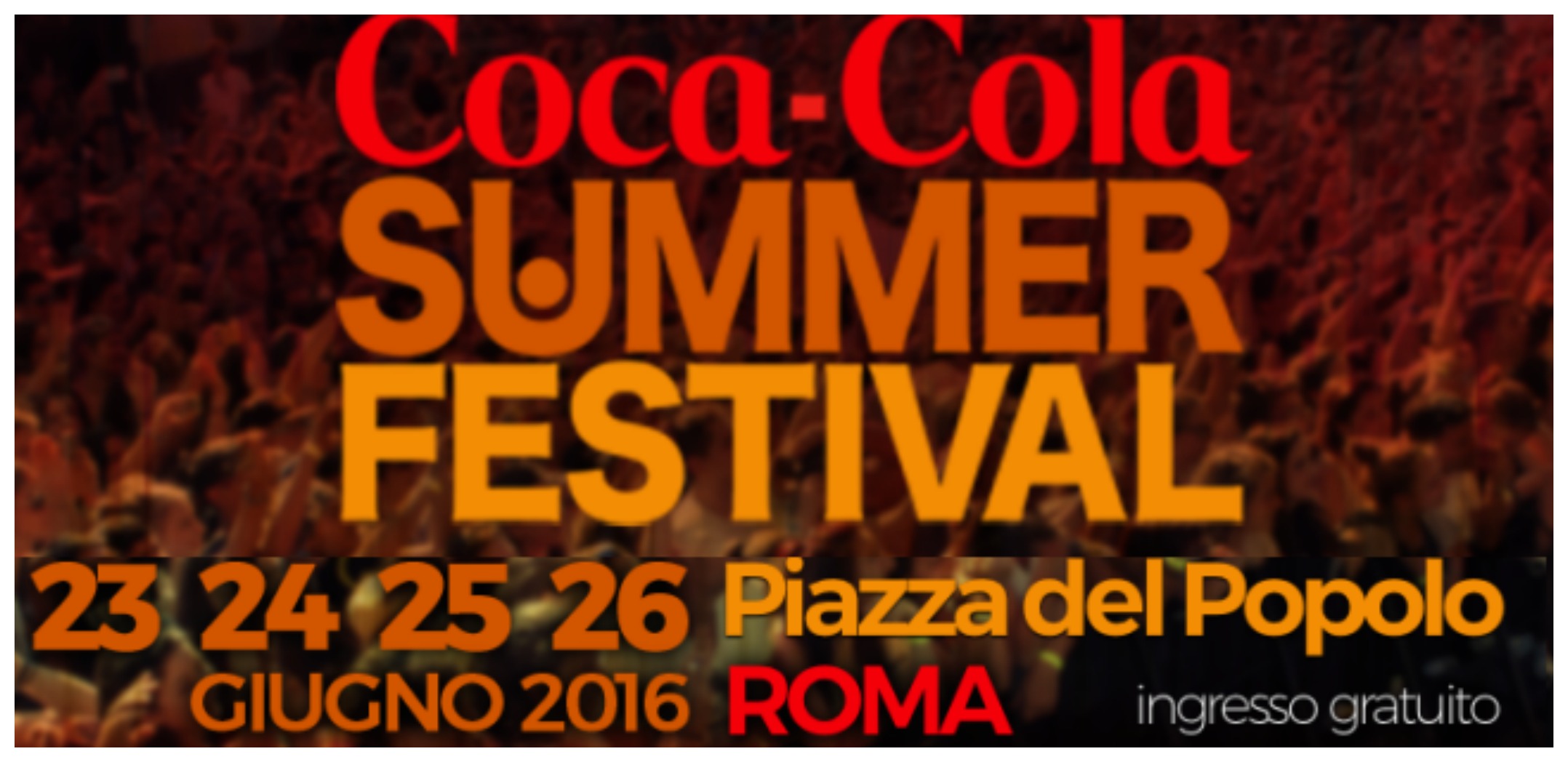 Coca Cola Summer Festival 2016 Il 23, 24, 25 E 26 GIUGNO IN PIAZZA DEL POPOLO A ROMA L’IMPERDIBILE APPUNTAMENTO CON LA MUSICA DELL’ESTATE!