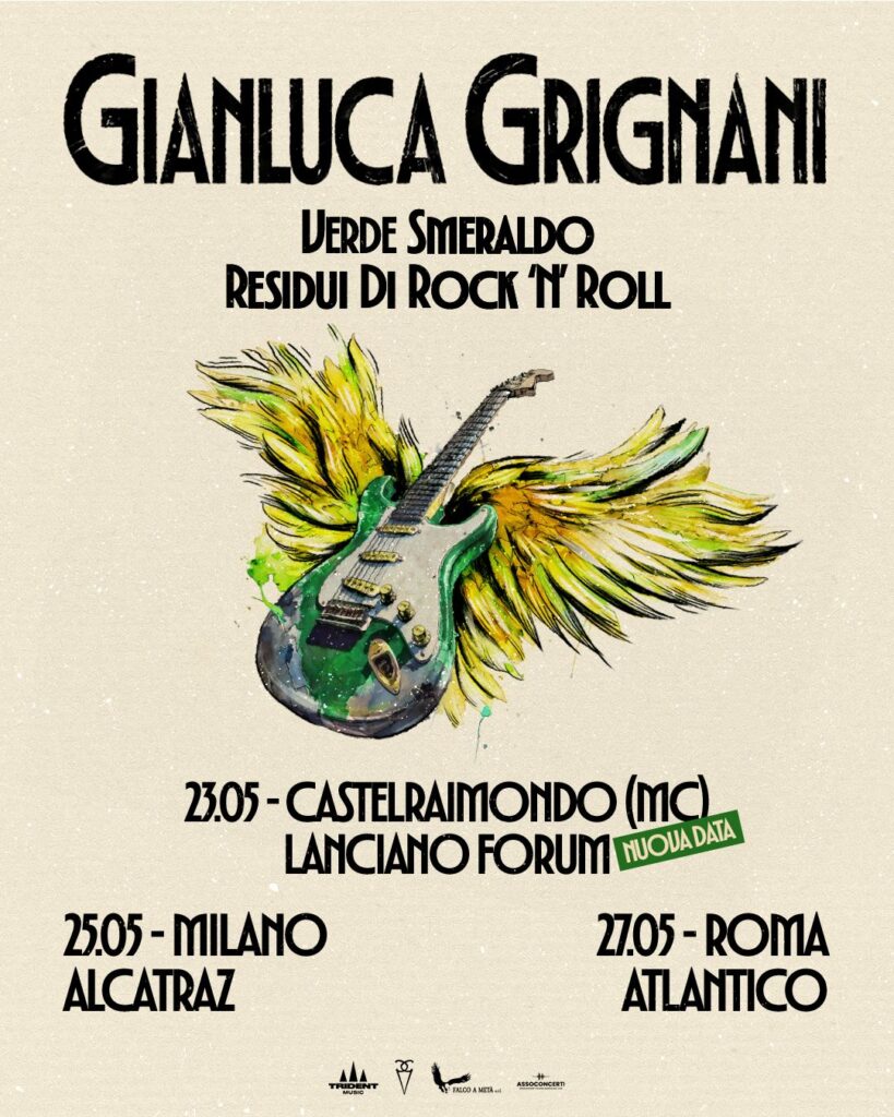 Dopo l’anteprima marchigiana, il tour farà tappa il 25 maggio all’Alcatraz di Milano e il 27 maggio all’Atlantico di Roma. I concerti, prodotti e organizzati da Trident Music, offriranno uno spettacolo elettrico e viscerale, dove energia e scrittura si fondono in una scaletta che ripercorre le tappe fondamentali della carriera di Grignani.