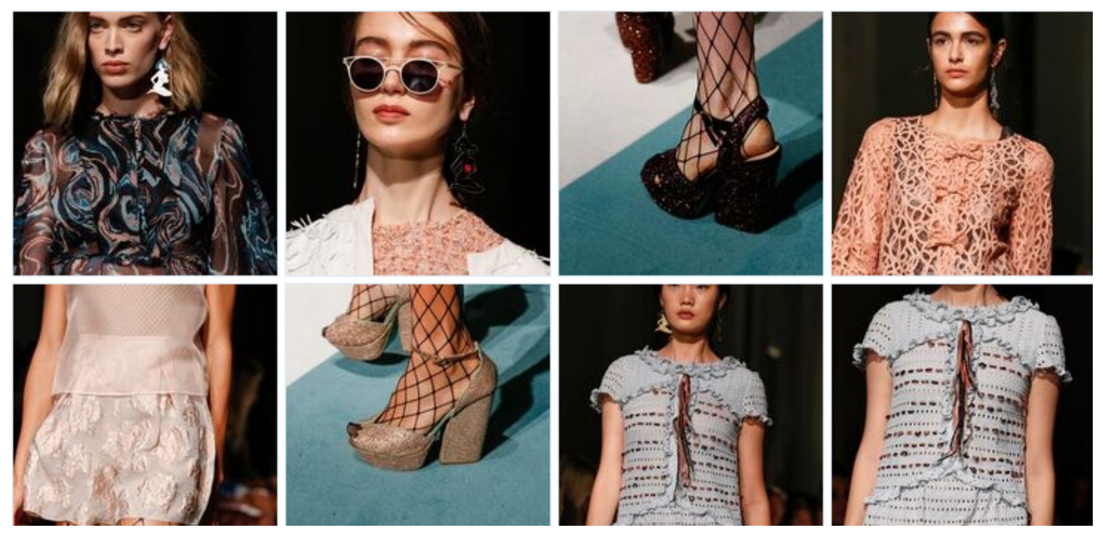 Diktat di collezione MATERICITÀ e MOVIMENTO. Dalla maglieria, che lavorata a mano crea bassorilievi floreali, ai pantaloni, realizzati da sovrapposizioni di balze di pizzo. Materici anche il neoprene laserato floreale che viene proposto su diversi soggetti e le reti arricchite di frange che animano abiti e top. Lo chiffon lavorato a punto smock assume le sembianze di una spugna per top e shorts.